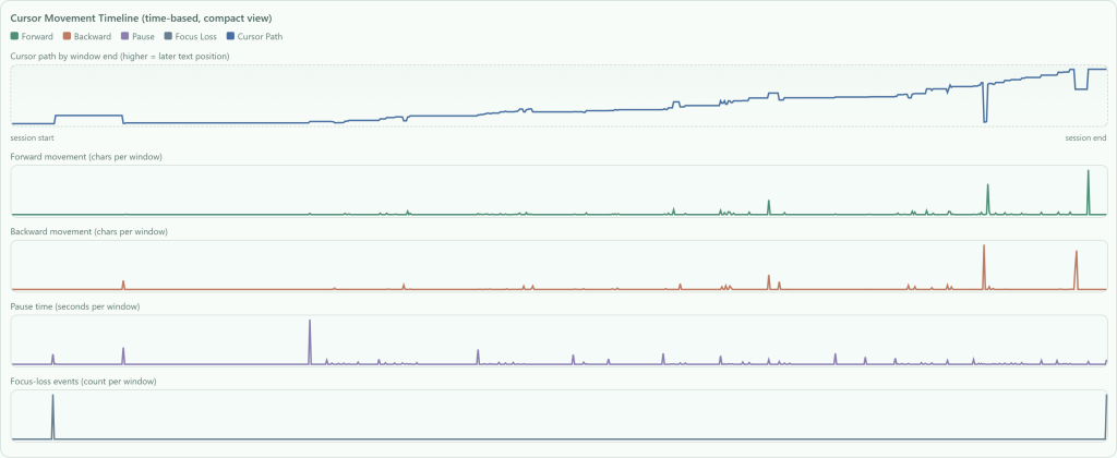 - Cursor Movement Timeline: Forward/backward movement, pause lanes, focus-loss detection, and compare-points mode.