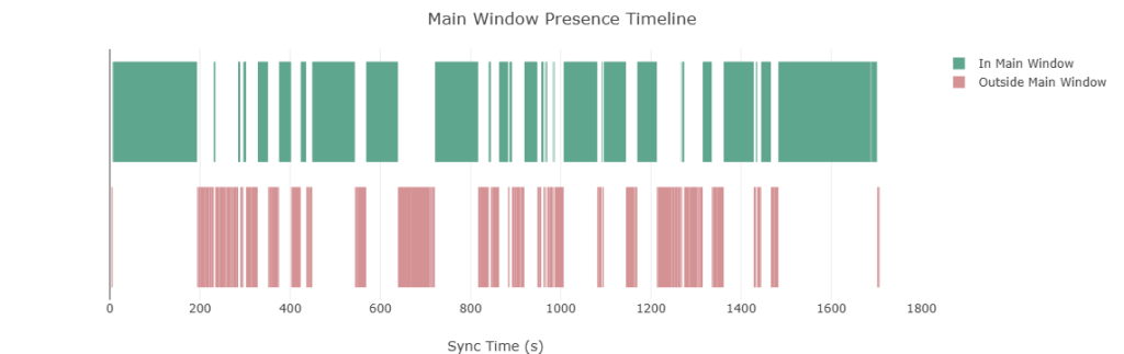 external_activity_parser.py): Turns the recorder’s XML into its own interactive dashboard featuring:- Main-window presence timeline